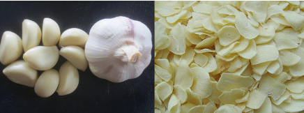 五、干燥: 將蒜片均勻鋪放在不銹鋼物料托盤上,溫度控制在55-60°C左右,烘6-8小時(shí)。烘干期間須嚴(yán)格控制好時(shí)間和溫度,以免干燥時(shí)間過長,溫度過高,使蒜片色澤、外形及營養(yǎng)價(jià)值受損,影響蒜片的品質(zhì)。