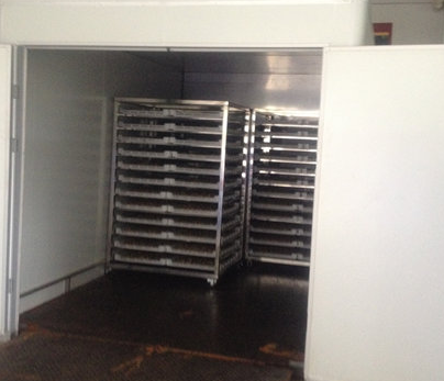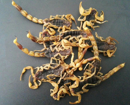 4、晾后的蝎子要進(jìn)入烘箱分別進(jìn)行50度~70度殺菌烘烤,溫度不能太高,否則蝎子將被破壞,每千克蝎子加工成0.55千克干蟲,其保健療效和營養(yǎng)成分會大大降低。